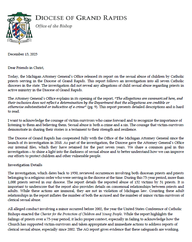 Due to inclement weather St. Charles and St. Joseph-St. Mary are closed today and all events are canceled for the day. As a reminder of our closing policy when Greenville or Belding public schools are closed for inclement weather St. Charles and/or St. Joseph-St. Mary will close and all events are canceled, including Mass and/or Adoration.